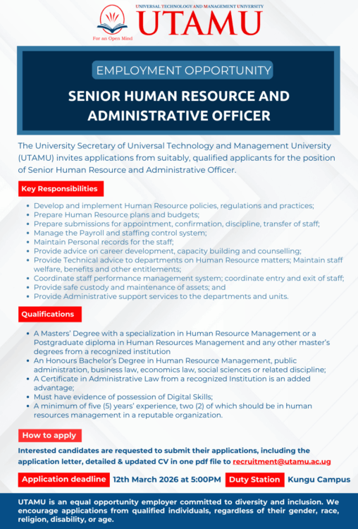 The University Secretary of Universal Technology and Management University (UTAMU) invites applications...